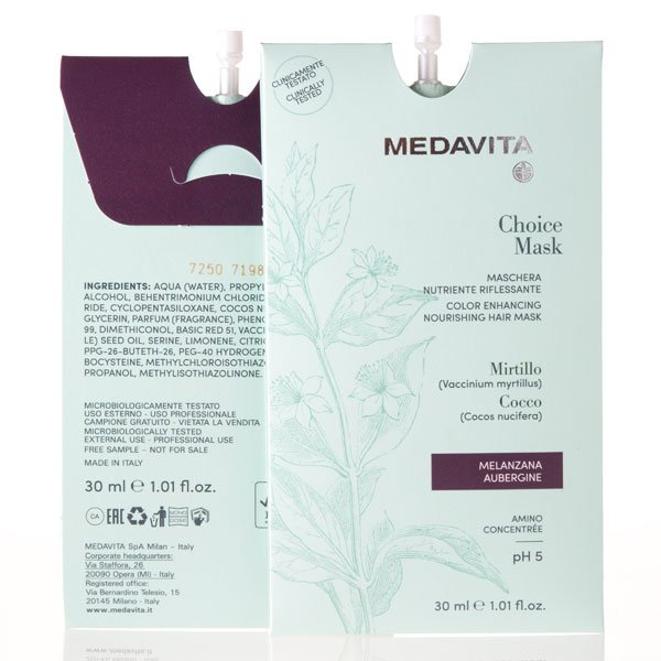 - Ενυδατική μάσκα λάμψης με μοβ χρωστικά, που ενισχύει το χρώμα και θρέφει τα μαλλιά.